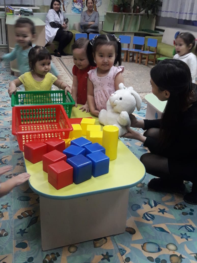 Бұл ашық сабақ мектепке дейінгі кіші жастағы 2 жастағы 6 адамнан тұратын балалармен өткізілді
